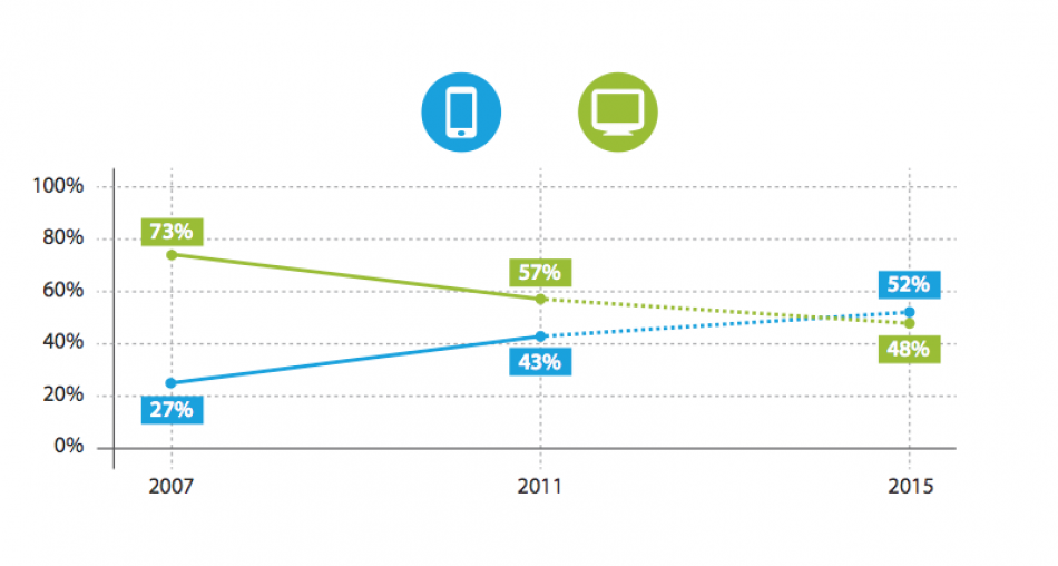 Gemäss einer Studie von smartinsights.com wurden im vierten Quartal 2013 26% des gesamten Web-Traffics über Smartphones und Tablets generiert. Dies entspricht mehr als einer Verdoppelung gegenüber dem Vorjahr. Experten rechnen damit, dass bis 2015 mehr Besucher über mobile Geräte im Web surfen werden als über einen Computer (siehe Grafik).